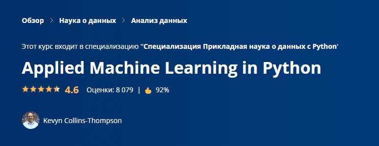Этот курс следует пройти после введения в науку о данных в Python и прикладного построения графиков, диаграмм и представления данных в Python и перед прикладным анализом текста в Python и прикладным социальным анализом в Python.