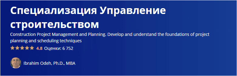 Специализация «Управление строительством» предназначена для профессионалов в области строительства и гражданского строительства, желающих продвинуться по карьерной лестнице. Благодаря этой специализации студенты получат всесторонние отраслевые знания, а также последние тенденции и разработки в отрасли. Эта специализация из 5 курсов будет охватывать основные аспекты управления строительством, включая инициирование и планирование проекта, методы и процедуры планирования, оценку и контроль затрат, а также финансирование строительных проектов. После того, как студенты завершат эту специализацию, они получат важные навыки и инструменты, чтобы оставаться актуальными и опережать кривую в мире управления строительством.
