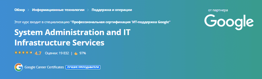 Этот курс переведет вас от работы на одном компьютере к работе со всем парком компьютеров. Системное администрирование — это область ИТ, отвечающая за поддержание надежных компьютерных систем в многопользовательской среде. В этом курсе вы узнаете об инфраструктурных службах, которые поддерживают работу всех организаций, больших и малых. Мы углубимся в облако, чтобы вы поняли все, от типичных настроек облачной инфраструктуры до того, как управлять облачными ресурсами. Вы также узнаете, как управлять серверами и настраивать их, а также как использовать отраслевые инструменты для управления компьютерами, пользовательской информацией и производительностью пользователей. Наконец, вы узнаете, как восстановить ИТ-инфраструктуру вашей организации в случае аварии.