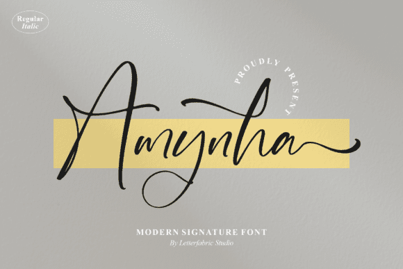 Amynha - современный фирменный шрифт подходит для любых проектов, таких как логотипы, брендинговые проекты, дизайн домашней одежды, упаковка продуктов, кружки, цитаты, плакаты, сумки, футболки, обложки книг, именные открытки, пригласительные билеты, поздравительные открытки, этикетки, фотографии, водяные знаки, специальные мероприятия и все другие ваши прекрасные проекты, которые нуждаются в красивом шрифтовом вкусе.