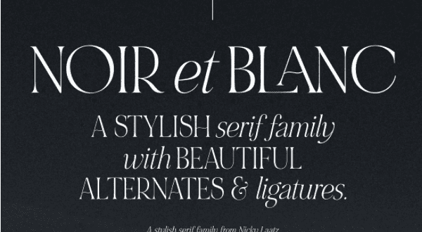 Как драматично сочетаются черное и белое - поприветствуйте "NOIR et BLANC" - стильное семейство засечек с красивыми лигатурами и чередованиями. Созданные для гармоничного использования, резкий контраст смелых и сладострастных заглавных букв обычного серифа прекрасно сочетается с изящными и знойными строчными буквами его курсивного аналога.