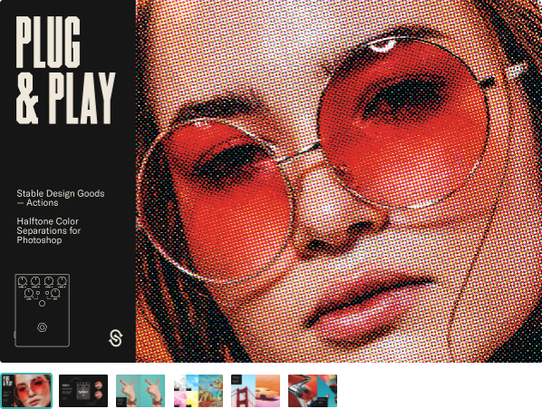 Включает в себя полутоновые действия с точками и линиями, которые разделяют любое изображение или дизайн на 4 цвета. Просто откройте холст, загрузите действия и нажмите кнопку воспроизведения.