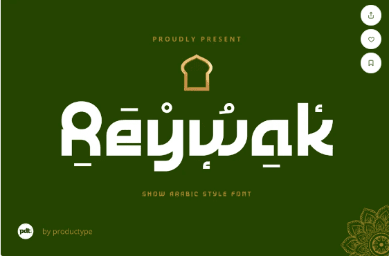 Reywak - новый впечатляющий шрифт, в котором сочетаются чистый вид шрифтов sans-serif и мощная символика арабских символов. Благодаря своей удобочитаемости он идеально подходит для заголовков и длинных текстов, а уникальная привлекательность арабески прекрасно подходит для плакатов и поздравлений. Reywak: используйте его, чтобы сделать ваш контент лучше других.