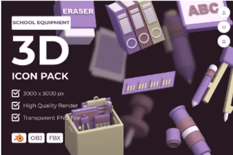 [creativemarket] School Equipment 3D Icon Pack (2024)