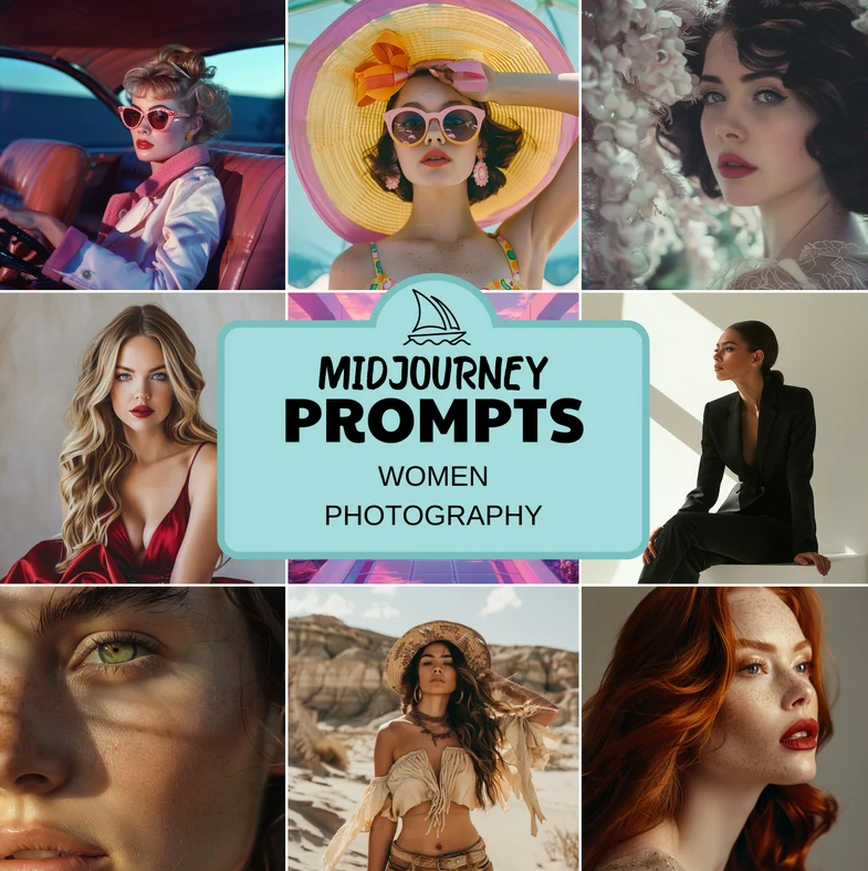 Midjourney Prompts for Women Photography, Wall Art Print, Professional Photography, Modern Art - сделайте неограниченное количество женских фотографий для вашего бизнеса, социальных сетей, POD продукции и многого другого!