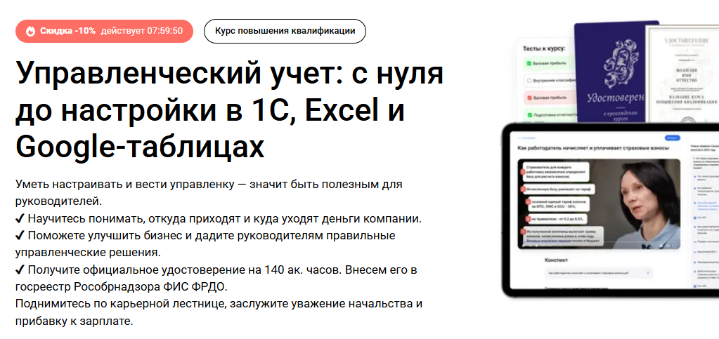УпÑавленÑеÑкий ÑÑеÑ: Ñ Ð½ÑÐ»Ñ Ð´Ð¾ наÑÑÑойки в 1С, Excel и Google-ÑаблиÑÐ°Ñ . Ðнлайн обÑÑение бÑÑгалÑеÑов â klerk.ru