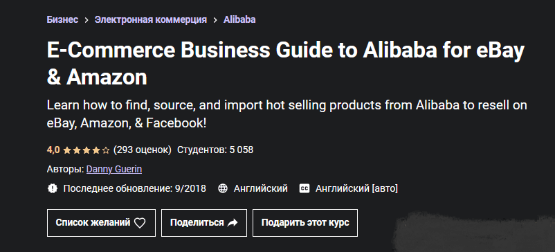 [Danny Guerin] [Udemy] Руководство по перепродаже товаров с Alibaba на Amazon и eBay (2021)