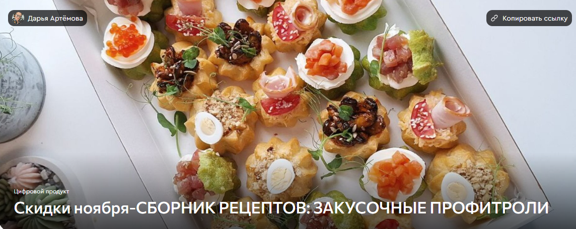 Скидки ноября-СБОРНИК РЕЦЕПТОВ: ЗАКУСОЧНЫЕ ПРОФИТРОЛИ | lava.top