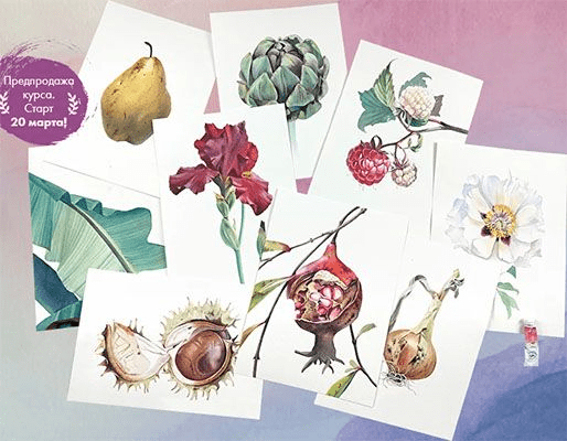 Большой акварельный курс от Художник Онлайн и Дарьи Куцаевой, посвященный искусству реалистичного изображения растений.