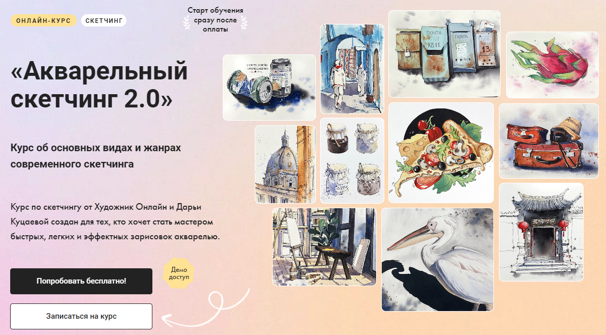Онлайн-курс «Акварельный скетчинг 2.0» | Обучение рисованию акварелью для начинающих | Школа Художник ONLINE