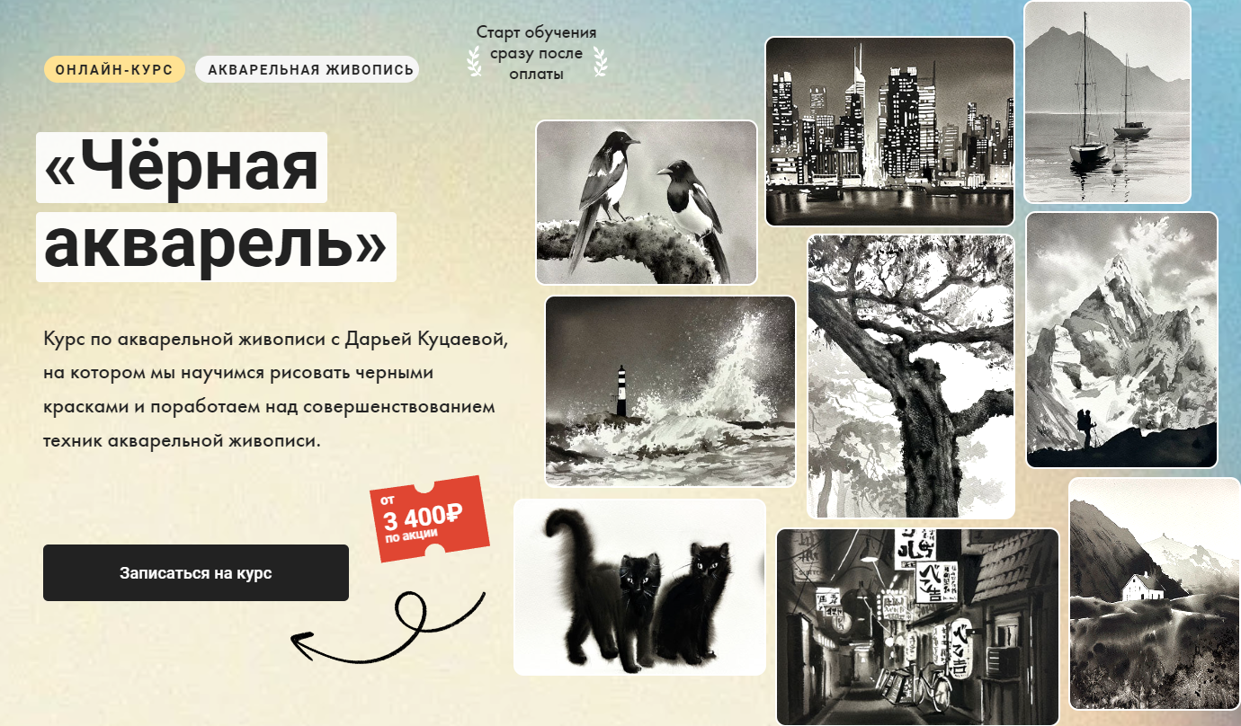 Практический курс по акварельной живописи черными красками с Дарьей Куцаевой.www.hudozhnik.online