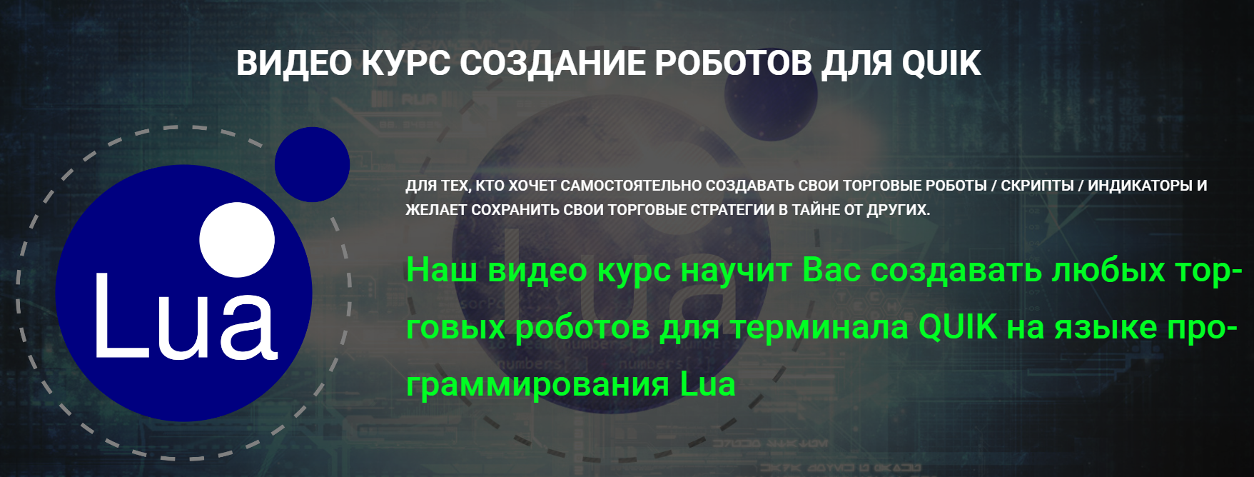 Наш видео курс научит Вас создавать любых торговых роботов для терминала Quik на языке программирования Lua.