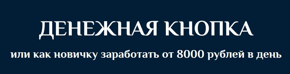 Пускай вас не пугают трудности, в интернете зарабатывают даже школьники, чем вы хуже? С помощью видеокурса «Денежная кнопка» вы научитесь всему, что должен уметь бизнесмен. Самое трудное – это найти в себе силы и сделать первый шаг. Если вы полны решимости, то хотя бы дочитайте текст на этой страничке, начало будет положено.
