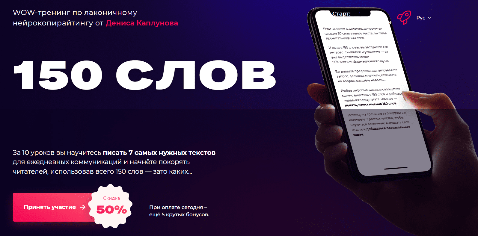 [Денис Каплунов] WOW-тренинг по лаконичному нейрокопирайтингу "150 слов". Тариф - Смогу сам (2022)