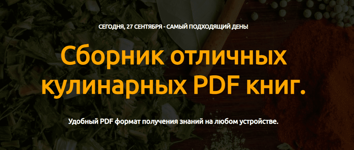 - Комплект кулинарных PDF книг это отличная возможность научиться готовить с нуля - завтраки, обеды, ужины. Сотворите кулинарную революцию для себя и своих близких на своей кухне.