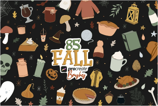 85 hand-drawn Fall stamps for Procreate. This Procreate set will help You to create your own Fall/Halloween themed art, patterns, stickers, etc. Most of twww.designcuts.com