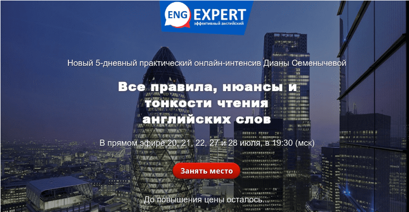 Приглашаю вас на 5-дневный практический интенсив по всем правилам, тонкостям и нюансам чтения и произношения английских слов! Наконец-то вы получите полный объем необходимых знаний о правилах, тонкостях и нюансах чтения английских слов. И, как всегда, у вас будет возможность попрактиковаться, что поможет вам разложить по полочкам в своей голове полученные знания.