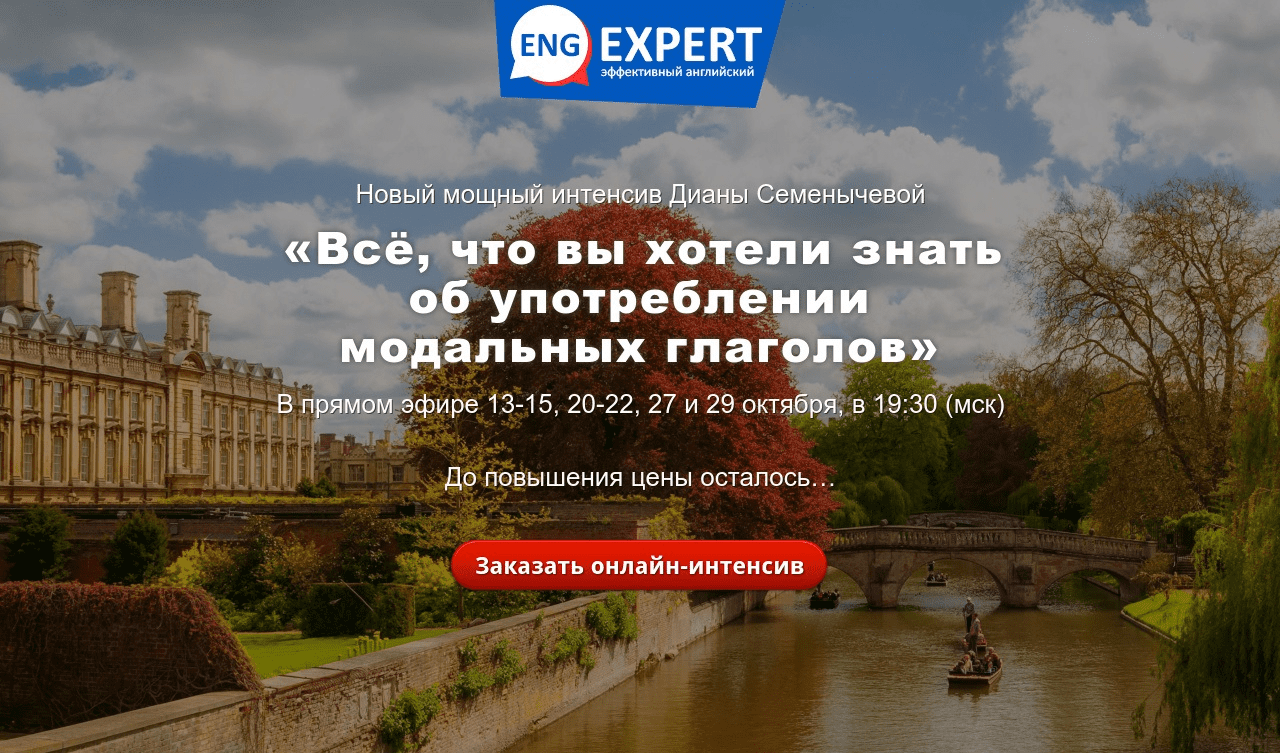 Ни в коем случае не советую пропускать новый интенсив, ведь он будет самым мощным по контенту из всего того, что я проводила до сих пор! Вас ждет бесценный материал для дальнейшего использования. Знания и понимания именно этих нюансов и тонкостей вам не хватало все эти годы, чтобы уверенно и безошибочно использовать модальные глаголы в своей речи!