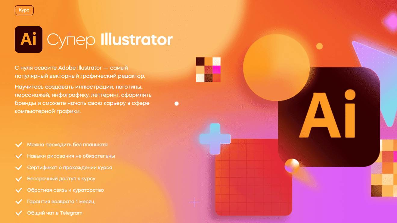 Научитесь создавать иллюстрации, логотипы, персонажей, инфографику, леттеринг, оформлять бренды и сможете начать свою карьеру в сфере компьютерной графики.
