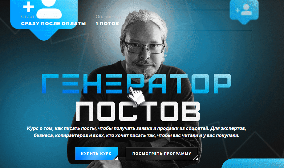 Курс о том, как писать посты, чтобы получать заявки и продажи из соцсетей. Для экспертов, бизнеса, копирайтеров и всех, кто хочет писать так, чтобы вас читали и у вас покупали.generatorpostov.tochkadostupa.pro