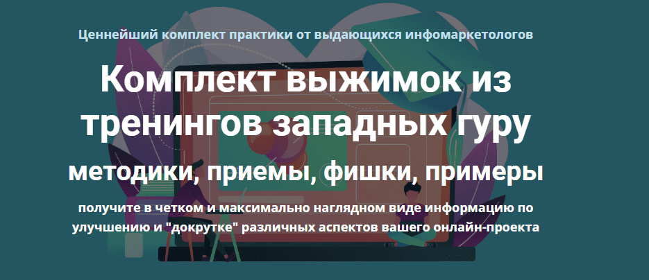 Этот инфопродукт специально для тех, кому нужна практика и конкретные работающие методики, примеры, элементы, фишки.