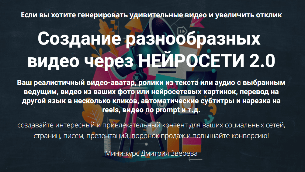 Создание разнообразных видео через Нейросети 2.0. Мини-курс по созданию видео через нейросети [Дмитрий Зверев]