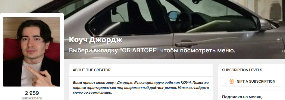 Всем привет меня зовут Джордж. Я позиционирую себя как КОУЧ. Помогаю парням адаптироваться под современный дейтинг рынок. Ниже вы найдете меню со всеми видео. ВНИМАНИЕ: КОНСУЛЬТАЦИИ ПО ЛУКМАКСИНГУ БОЛЬШЕ НЕ ПРОВОДЯТСЯ. ЛИЧНЫЕ КОНСУЛЬТАЦИИ И СОЗВОНЫ Я НЕ ПРОВОЖУ! На всякий случай если вы из...boosty.to