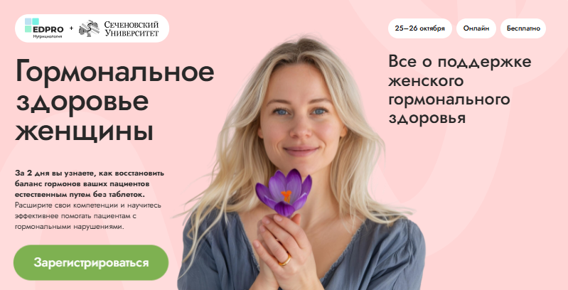 За 2 дня вы узнаете, как восстановить баланс гормонов естественным путем без таблеток. Расширите свои компетенции и научитесь эффективнее помогать пациентам с гормональными нарушениями.lp-edpro.ru