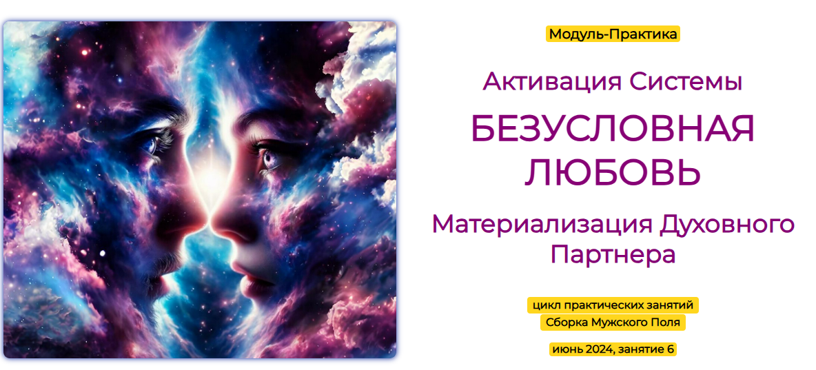 - Практический модуль-практика позволит прогрузить и активировать состояния слияния со своим Духовным партнером в истинном мире.