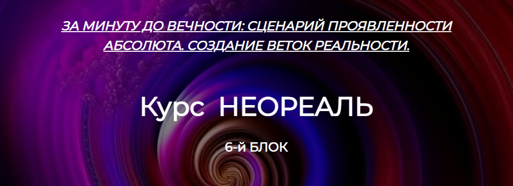 Новый курс Неореаль 6 «За минуту до Вечности: Сценарий проявленности Абсолюта. Создание веток реальности.» — это квинтэссенция моего последнего исследования Веток реальности, Петель Времени, Двойников и Параллельных миров.