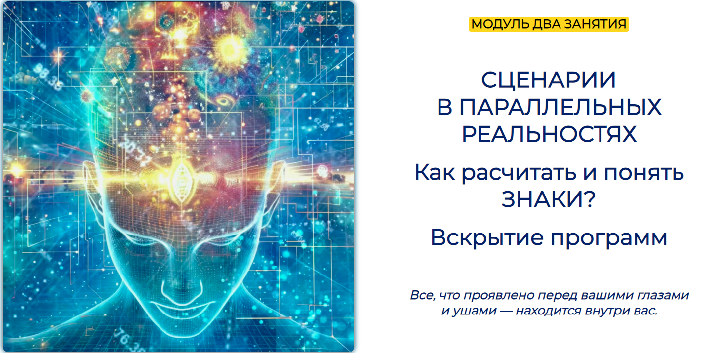 Все это вы узнаете в новом Модуле «СЦЕНАРИИ В ПАРАЛЛЕЛЬНЫХ РЕАЛЬНОСТЯХ. Как расчитать и понять ЗНАКИ? Вскрытие программ.»