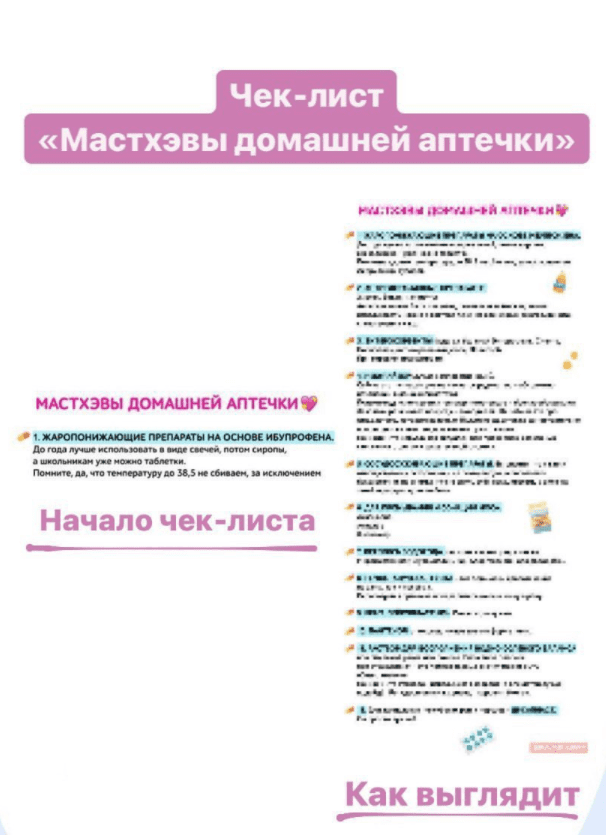 Чек-лист "Мастхэвы домашней аптечки" от доктора Екатерины Юрьевой.