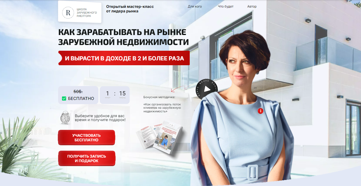 Тариф: Запись открытого мастер класса от лидера рынка Школы Зарубежной недвижимости