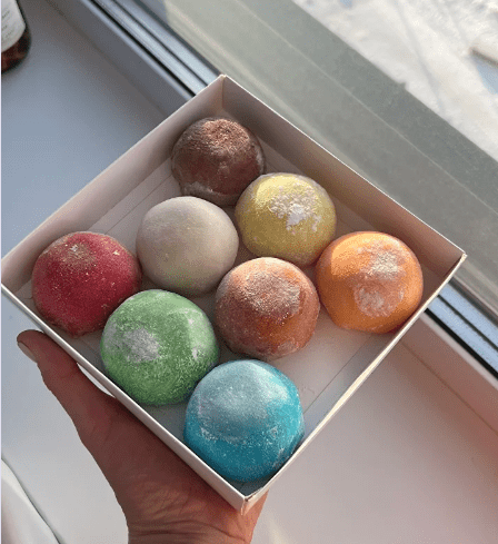 Крем на основе творожного сыра и сиропа арбуза, центр из сочного пюре дыни