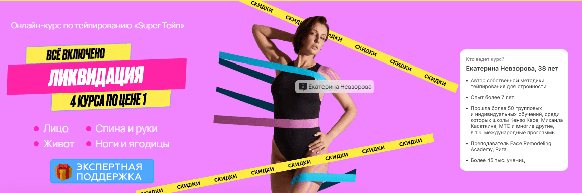 [Екатерина Невзорова] Онлайн-курс по тейпированию лица и тела «Super Тейп 4в1: лицо + живот + ноги и ягодицы + осанка» (2021)