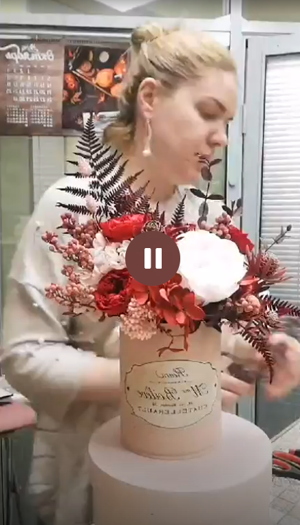 раскидистого букета, ассиметричной композиции и создании шляпной коробки