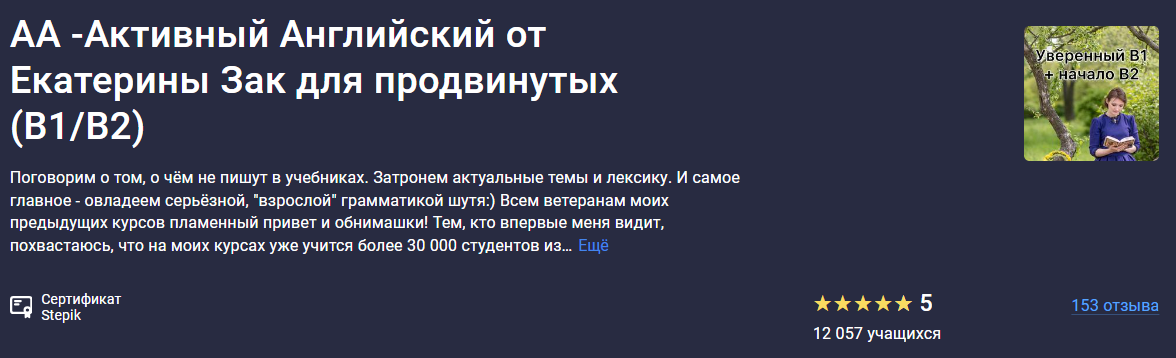 АА -Активный Английский от Екатерины Зак для продвинутых (B1/B2)