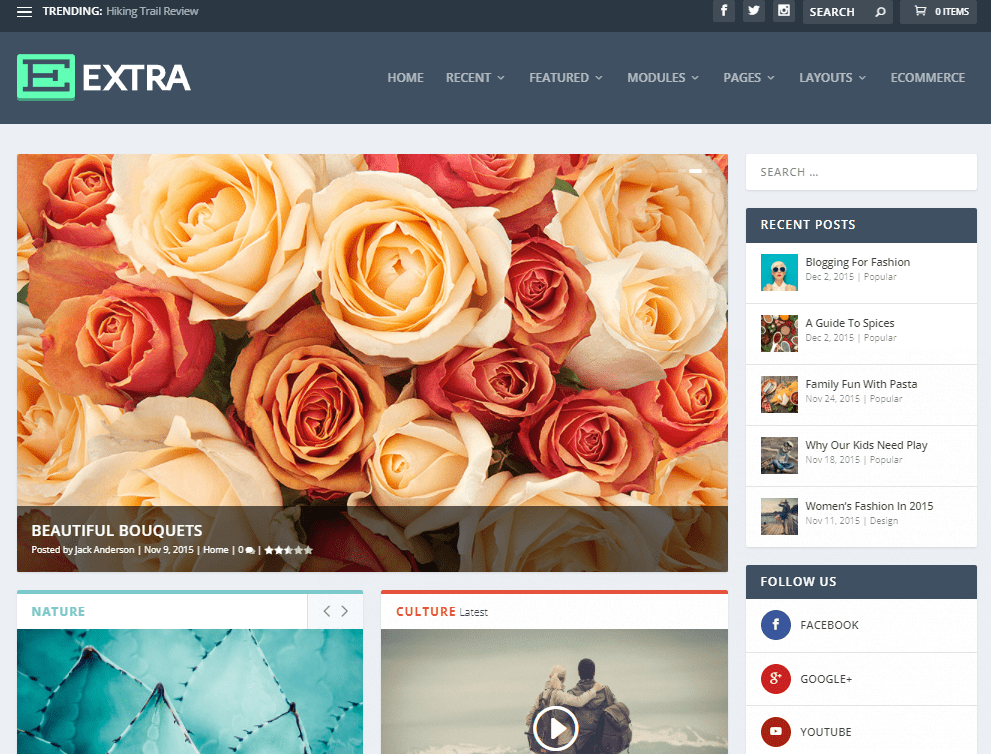 Extra v4.12.1 Rus - самая новая и мощная тема от Elegantthemes для WordPress, работает на Divi Builder. Шаблон со светлым дизайном, отлично подойдет для интернет магазинов на базе WooCommerce новостных и журнальных сайтов. Шаблон имеет адаптивный дизайн, который великолепно смотрится на мобильных устройствах и планшетах. В шаблоне Extra, все настраивается и создается с помощью Drag & Drop Divi Builder. Каждая часть вашего сайта является строительным блоком, который может быть настроен и расположен в любом месте страницы. Этот метод приводит к полному контролю, и по-настоящему уникальному и динамическому созданию страниц. Просто выберите желаемые элементы контента, настройте их содержание и дизайн, а затем расположите их в желаемом порядке и наслаждайтесь.