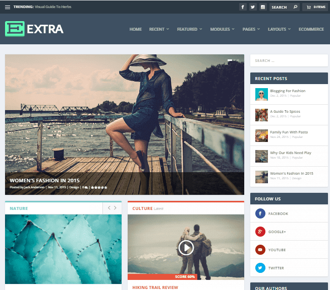 Extra v4.14.1 - самая новая и мощная тема от Elegantthemes для WordPress, работает на Divi Builder. Шаблон со светлым дизайном, отлично подойдет для интернет магазинов на базе WooCommerce новостных и журнальных сайтов. Шаблон имеет адаптивный дизайн, который великолепно смотрится на мобильных устройствах и планшетах. В шаблоне Extra, все настраивается и создается с помощью Drag & Drop Divi Builder. Каждая часть вашего сайта является строительным блоком, который может быть настроен и расположен в любом месте страницы. Этот метод приводит к полному контролю, и по-настоящему уникальному и динамическому созданию страниц. Просто выберите желаемые элементы контента, настройте их содержание и дизайн, а затем расположите их в желаемом порядке и наслаждайтесь.