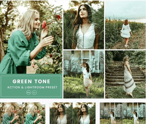 Этот пресет Green Tone Action & Lightrom Presets предназначен для создания броского и резкого образа, который выделяется на фоне остальных, создавая уникальный плавный стиль, акцентируя внимание на различных оттенках.