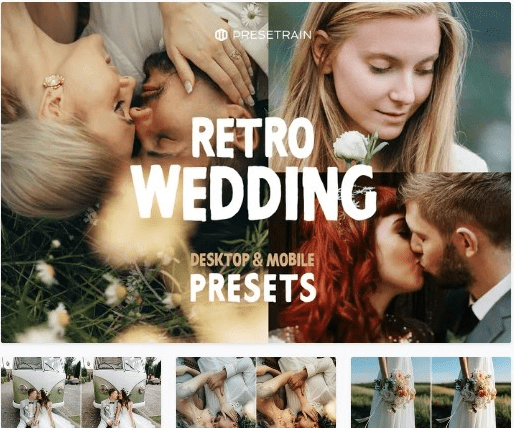 Retro Wedding Коллекция предлагает 10 Пресеты для настольных и мобильных устройств, Lightroom, Photoshop и ACR. Пресеты Instagram, свадебные пресеты, пресеты блоггера, пресеты истории любви, винтажные пресеты.