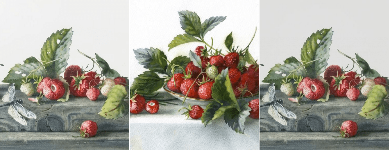 На мастер-классе будем тренироваться в живописи фактур ягод клубники. Это кажется невероятно сложной задачей в акварели: красный цвет, блестящая поверхность ягод, сложный рельеф и множество мелких деталей.