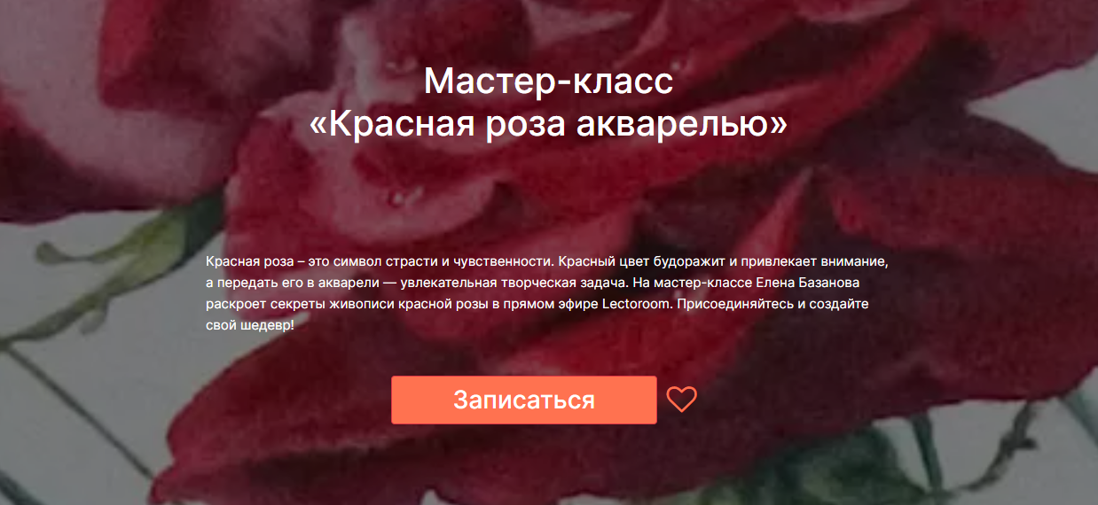 На мастер-классе Елена Базанова раскроет секреты живописи красной розы в прямом эфире Lectoroom. Присоединяйтесь и создайте свой шедевр!