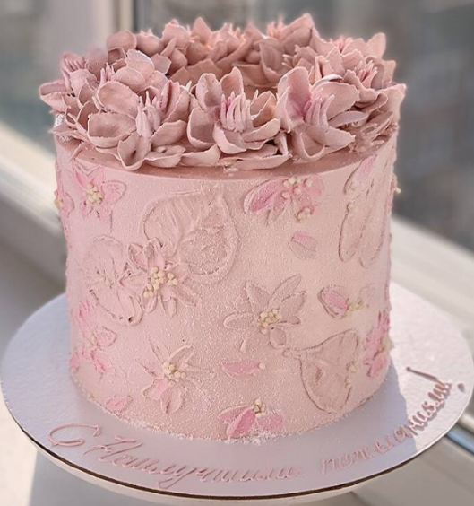 - Декор одноярусного торта. Фактурное покрытие с рисунком на торте