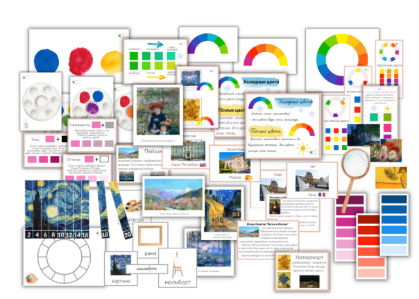- Цветовой круг" А4 + карточки с разделением цветов на основные, составные и третичные