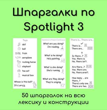 45 шпаргалок-вклеек в тетрадь по всей лексике и грамматическим конструкциям Spotlight 3 + 6 шпаргалок по обновлениям учебника от 2023г