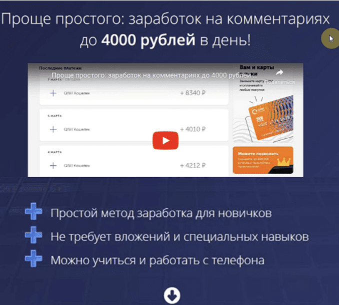 Но зато действительно работает, действительно приносит результаты и действительно очень и очень прост! Все, что от вас потребуется - просто размещать комментарии. Это никакой не фриланс с отзывами, не нужно ничего спамить, никого убеждать, продавать, и так далее. Нет никаких подвохов и подводных камней. В чем именно заключается метод заработка и что нужно делать, смотрите немного ниже на сайте. Также смотрите на отзывы реальных людей, которые успешно используют мой курс и получают реальные результаты. Я не буду обещать вам миллионов, но любой новичок, прошедший мой курс, сможет получать доход до 4000 рублей в день без каких-либо вложений, сложностей и подводных камней! Внимательно изучите мой сайт до конца и присоединяйтесь к моему обучающему курсу, тем более, что сейчас он продается со скидкой для новых посетителей. Всем, кто, как и я когда-то, находится сейчас в отчаянии, в бедственном положении, и хочет изменить свою жизнь, скажу: хватит выживать, берите мой курс и начинайте, наконец-то, жить! Если у меня вышло разобраться с тем, как в интернете получают доход и реально зарабатывают деньги - однозначно это сможет любой из вас!