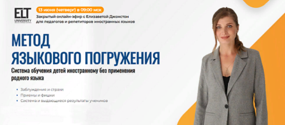 [elt-university] Метод языкового погружения. Система обучения детей иностранному без применения родного языка (2024)