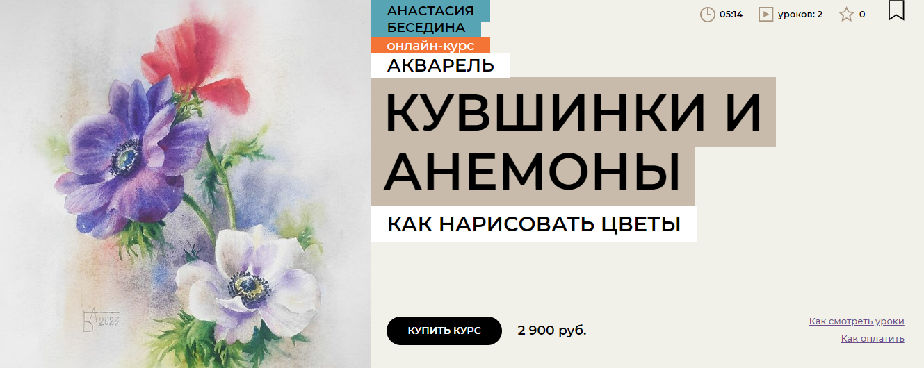 Скачать:Кувшинки и анемоны. Акварельный онлайн-курс рисования цветов