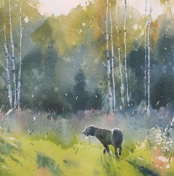 Учимся грамотно передавать состояние солнечного утра и пишем яркие колоски травы на фоне темного леса. Решаем сразу несколько художественных и композиционных задач.